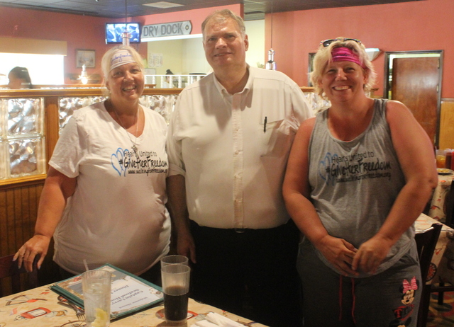 LAURINBURG — Stacie Phillips and Patti Crawford are walking from Gastonia to Wilmington to raise awareness about human trafficking.