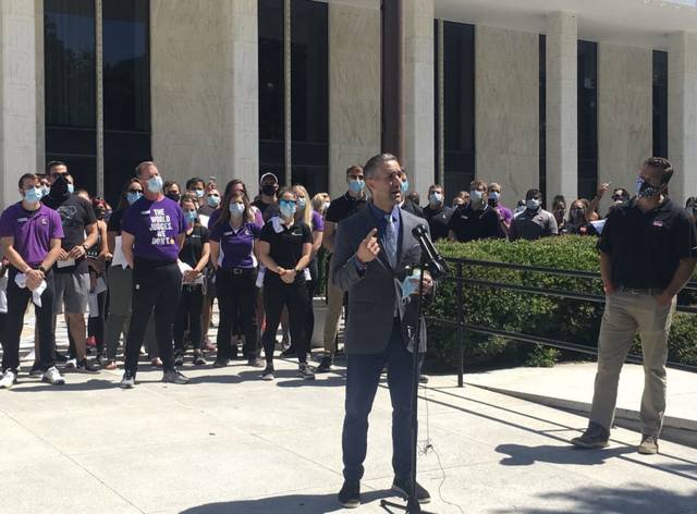 Earlier Wednesday, dozens of gym owners and workers gathered in front of the General Assembly to urge lawmakers to override the veto on H.B. 594. Fitness Operators for Responsible Reopening, a coalition of gyms, led the crowd in calling for the chance to show fitness centers could safely reopen.