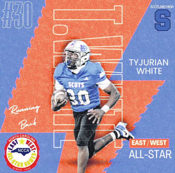 LAURINBURG —Senior running back Tyjurian White has been named a member of the North Carolina East-West All-Star Games.