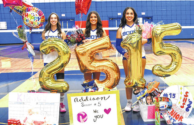 LAURINBURG — The Lady Scots closed out their home season with a win on Senior Night, Thursday, celebrating seniors Kinsey Hamilton, Addison Lewis and Ramsey Hale before sweeping the Purnell Swett Rams for the second time this season.