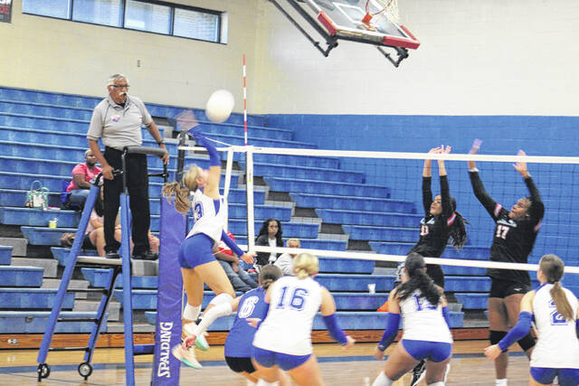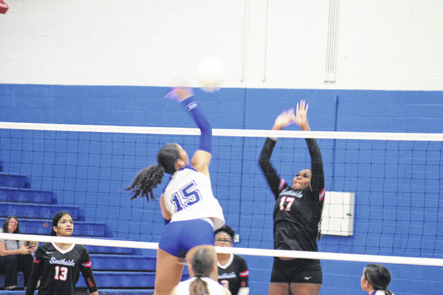 LAURINBURG —The Lady Scots volleyball team breezed past the opening round of the playoffs, sweeping the Olympic Trojans on Saturday, Oct. 18, to advance to the second round.