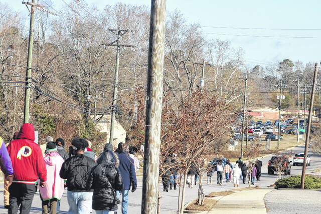 Community members march down Main Street in Laurinburg to honor the legacy of Martin Luther King Jr.